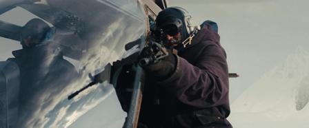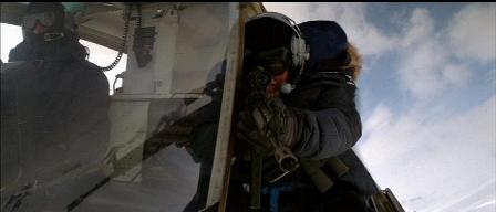 At 4:14 on the DVD, the crew of the suspended snowcat begins